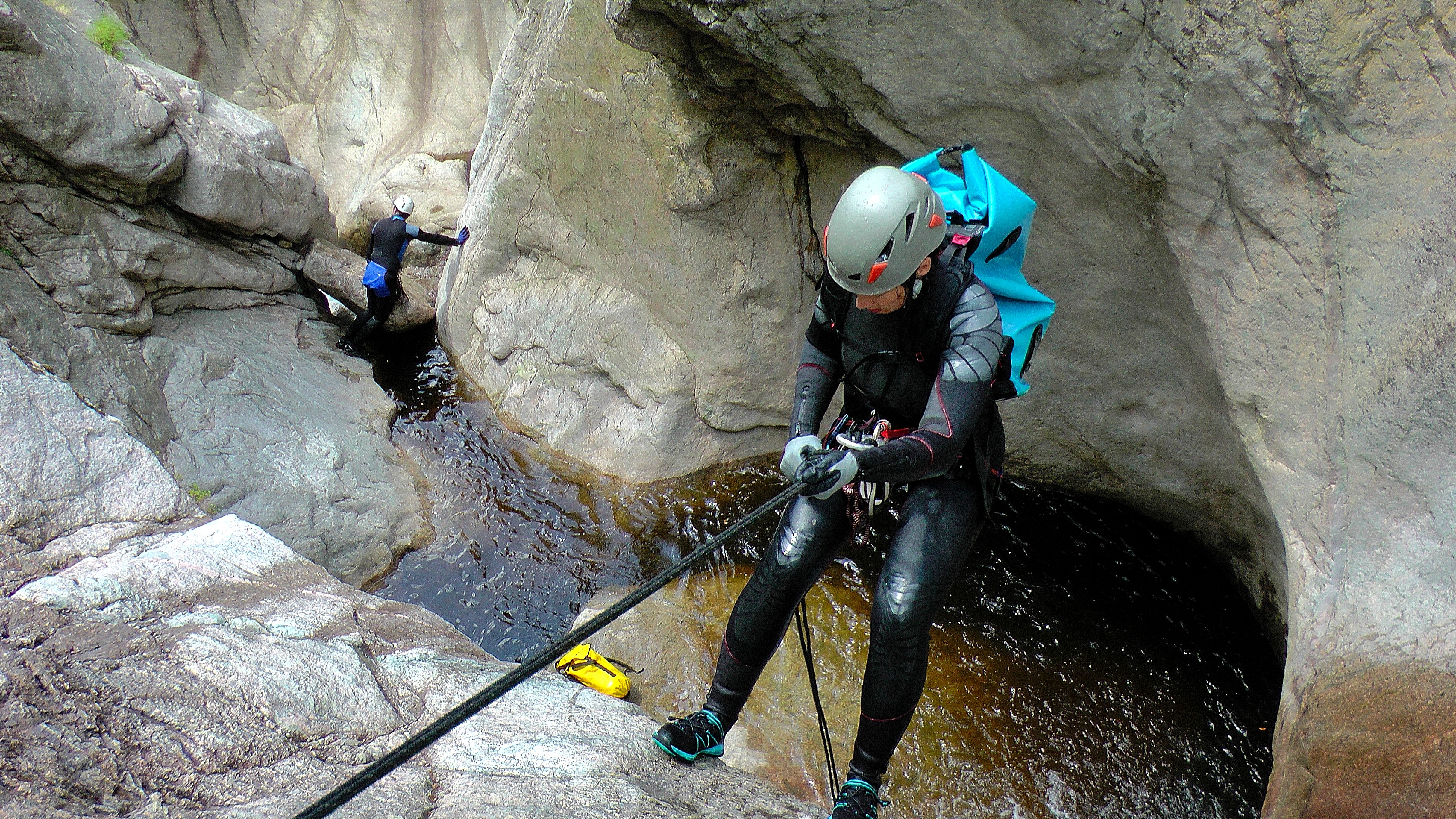 Šeštas tarpeklis – Sulleoni. Naujas mūsų įveiktas maršrutas. IV kategorijos, aukščiausias nusileidimas 65 m. Tikrai įspūdingas, labai įdomus ir gražus. Nusileidimai seka vienas po kito, vandens buvo pakankamai, gavom gero dušo. Keliavome 6 val., gerai, kad švietė saulė, šiais metais einant tarpekliais saulės perdaug nebuvo. Įrašyčiau į Korsikos tarpeklių topus. Dar kažkada laukia Monti Tignosu, dviejų dienų maršrutas.
