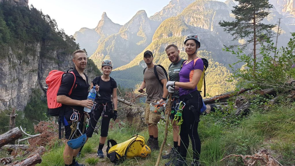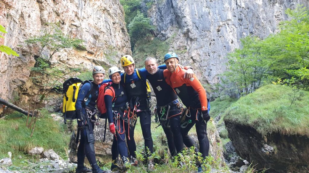 Užtrunkame 4 val. 15 min. Į maršrutą tiesiai po 2000 km kelio iš namų. Mūsų jau 10 – vietoje su kanjoningu susipažinti prisijungia Ieva. Viskas sėkmingai.