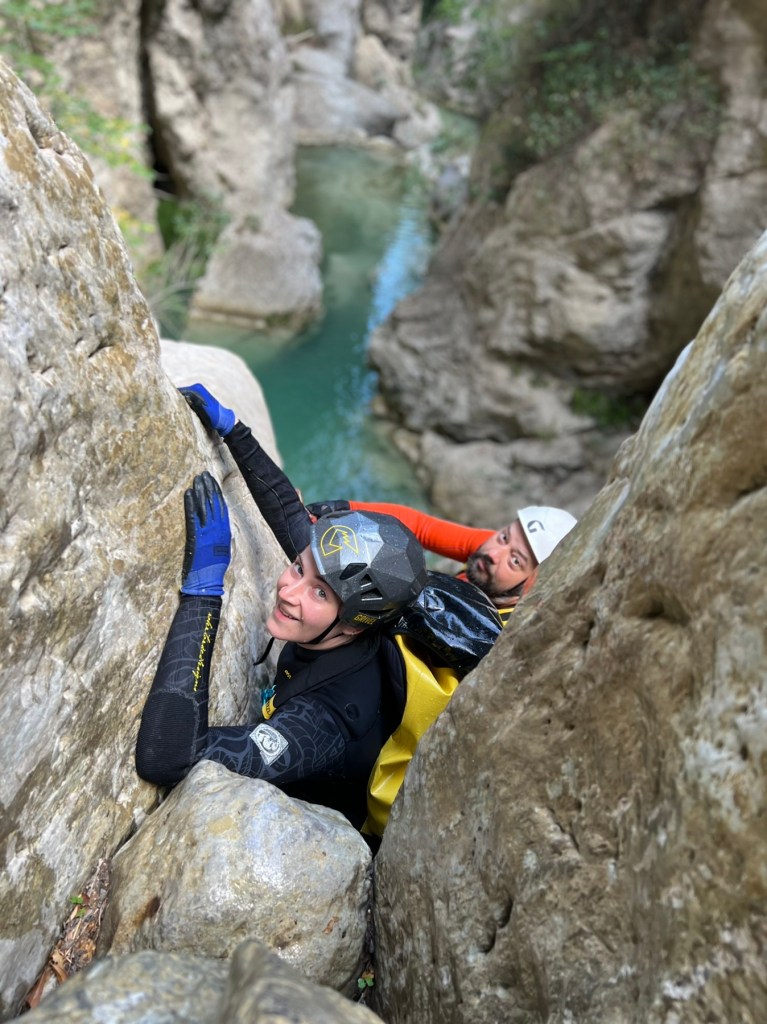 Buvome vietoje 8 ryto. Praėjome maršrutą Italijoje, Lavarie, 4 sk. Gružus, mažai vandens. Prie didesnio būtų sudėtingesnis. 40 metrų aukščiausias nusileidimas. Patiko.